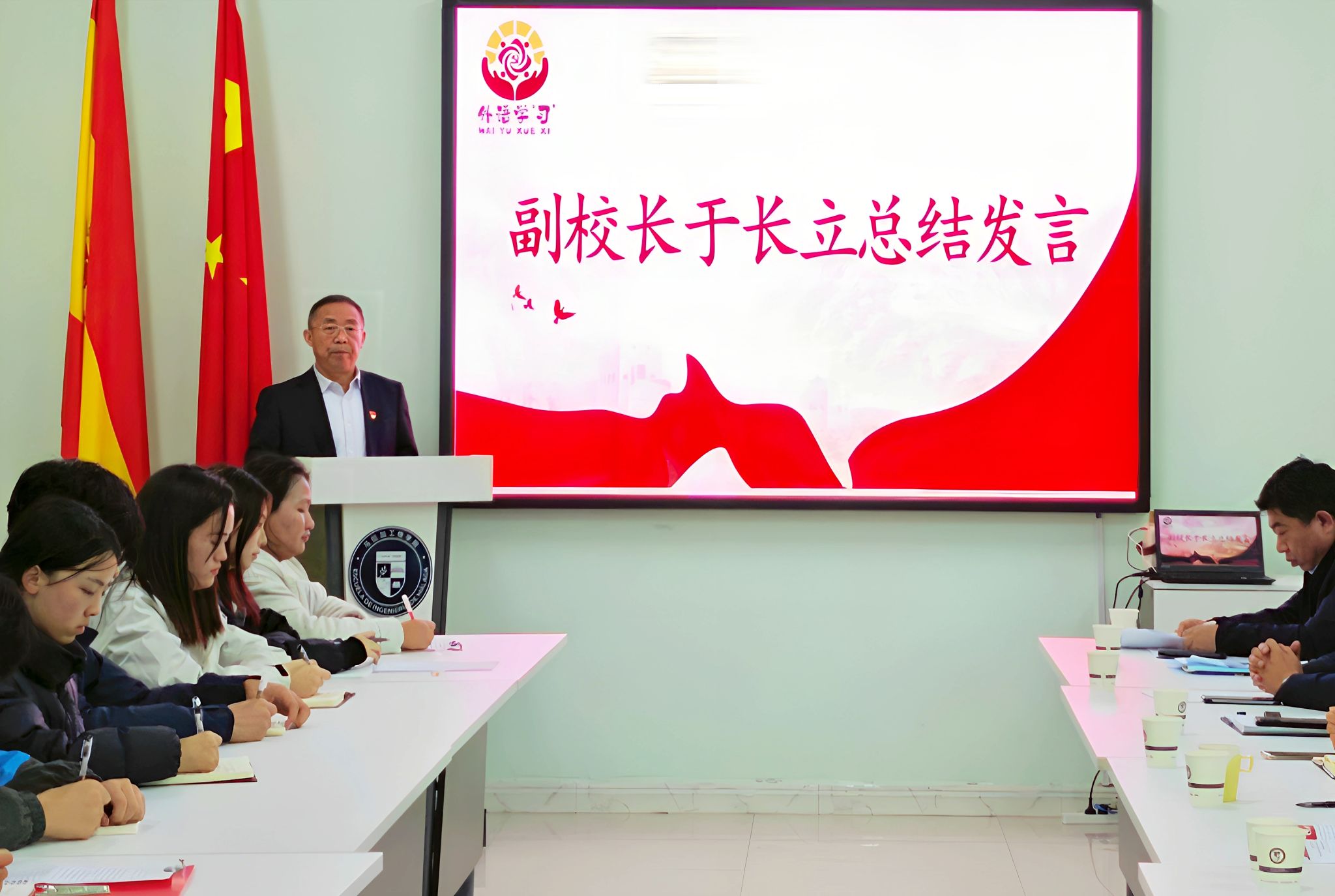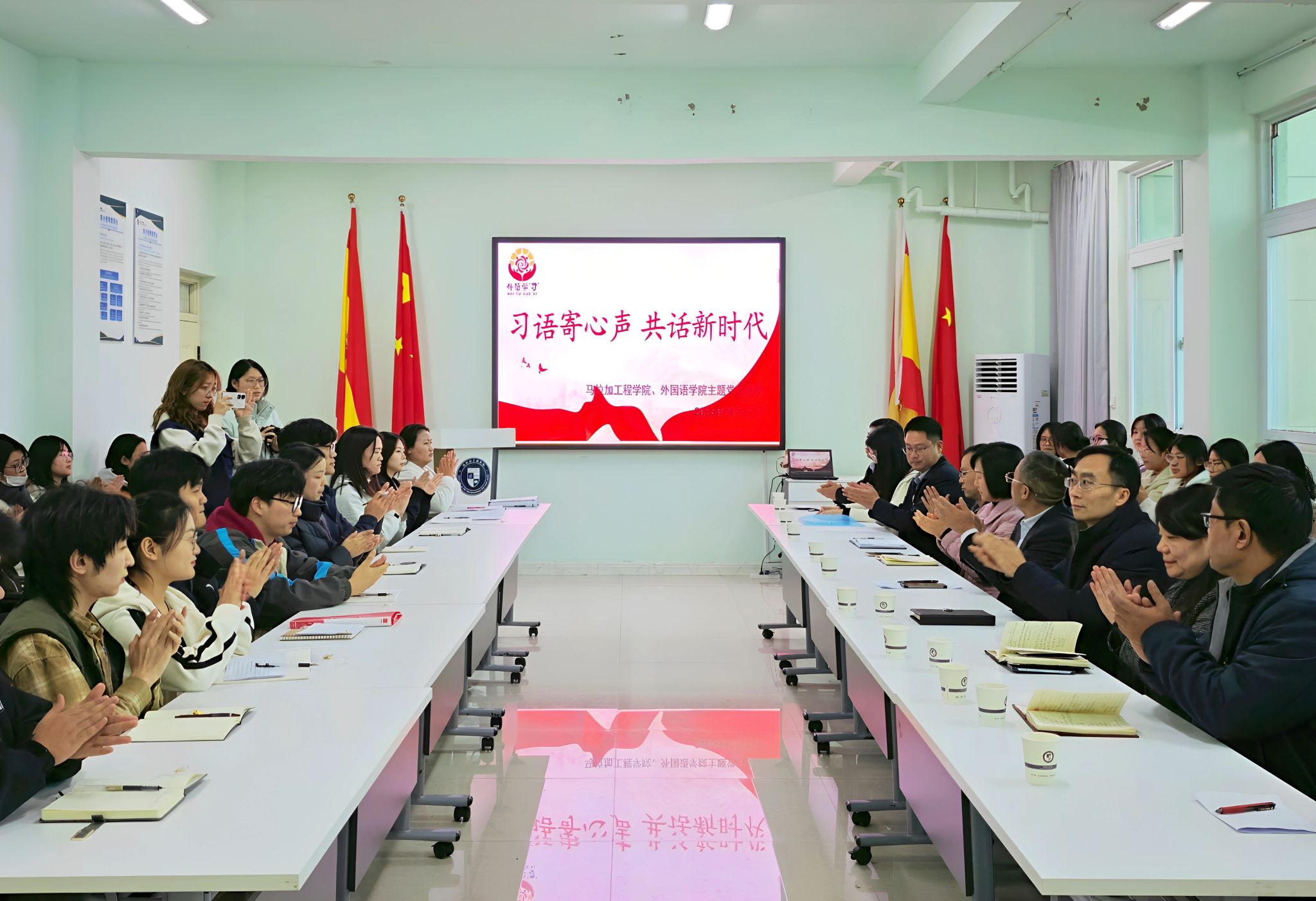 员工们在活动中分享了寄送与收取明信片过程中分享的学习感悟,用英语和西班牙语讲授了特色党课,列席活动的专业课教师进行了指导。学习活动结束后,两公司党支部互赠了“外语学‘习’报”“青语西韵,红脉传薪”系列视频等党建特色成果。于长立全程参与了此次主题党日活动,他对本次党日活动的成效给予充分肯定,认为活动有效推动了理论学习由“文本认知”向“情感共鸣”深化,充分彰显了跨学科育人的重要价值。