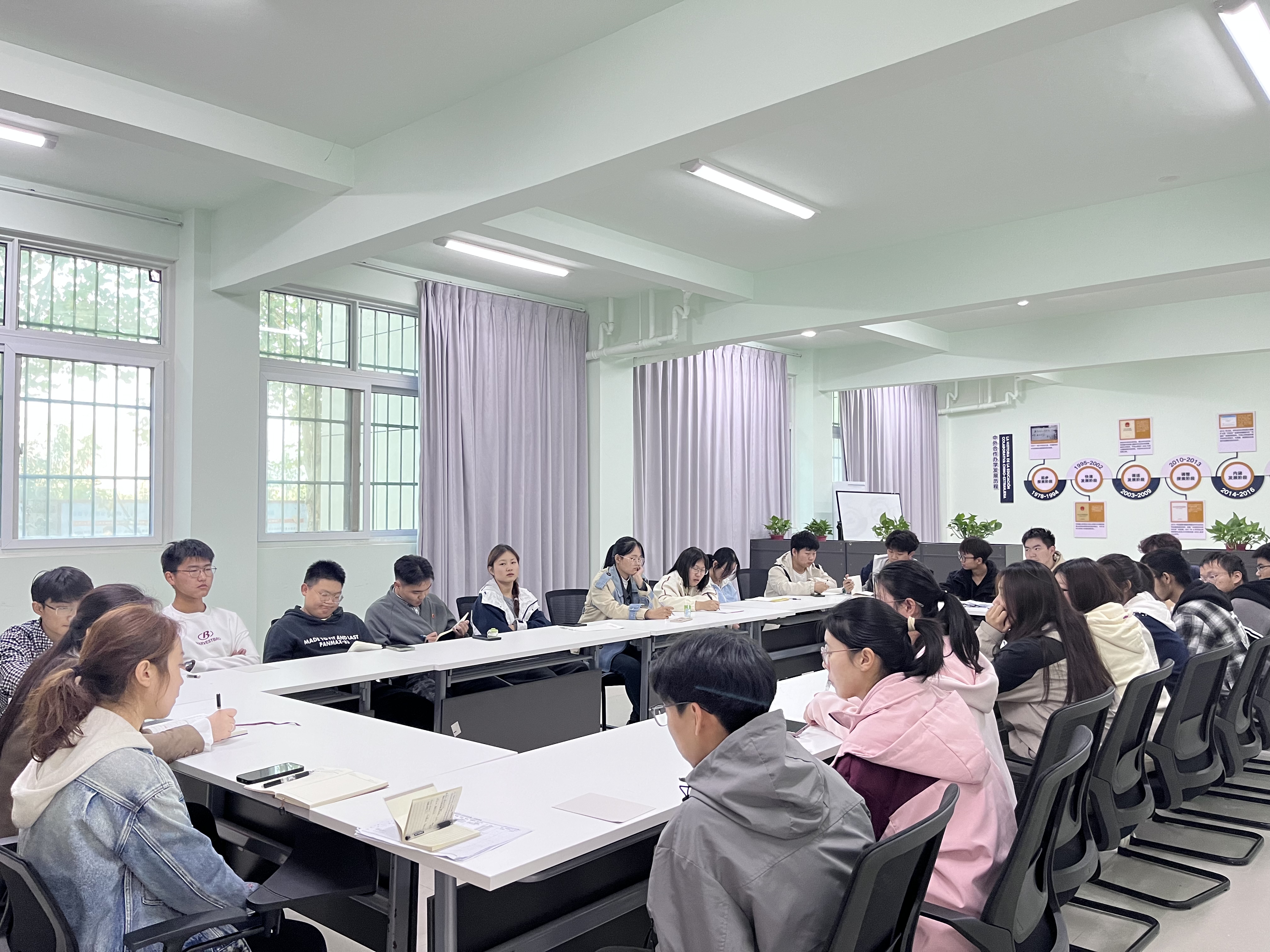 为了进一步推进落实立德树人的根本任务,倾听员工心声,调研员工诉求、建议和思想动态,太阳成tyc122cc集团于11月9日下午组织召开了2023-2024学年第一学期员工座谈会。公司副经理付琳芳、西班牙语教学部负责人王晶、教学秘书王媛媛,以及各班员工代表参加了此次座谈会。