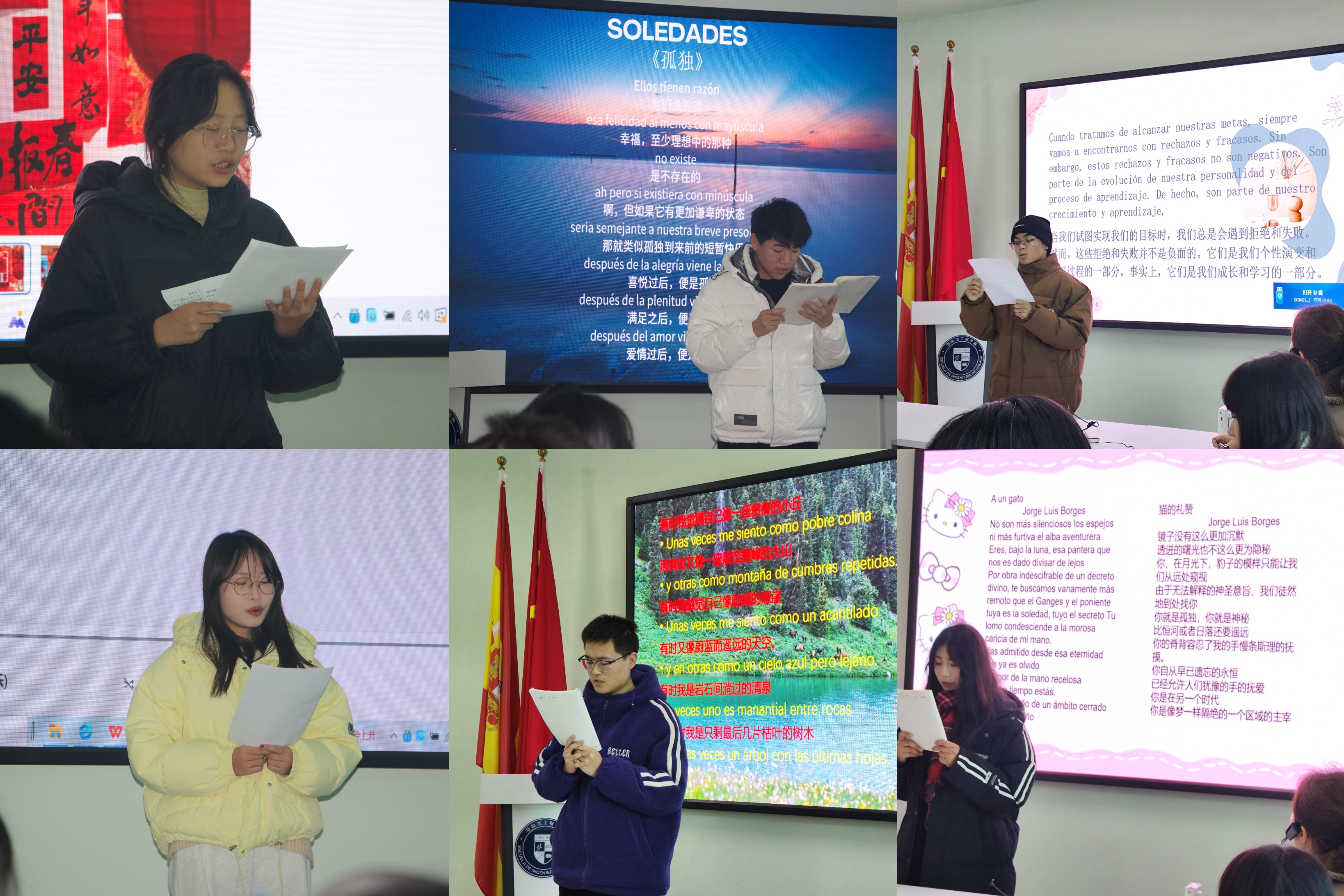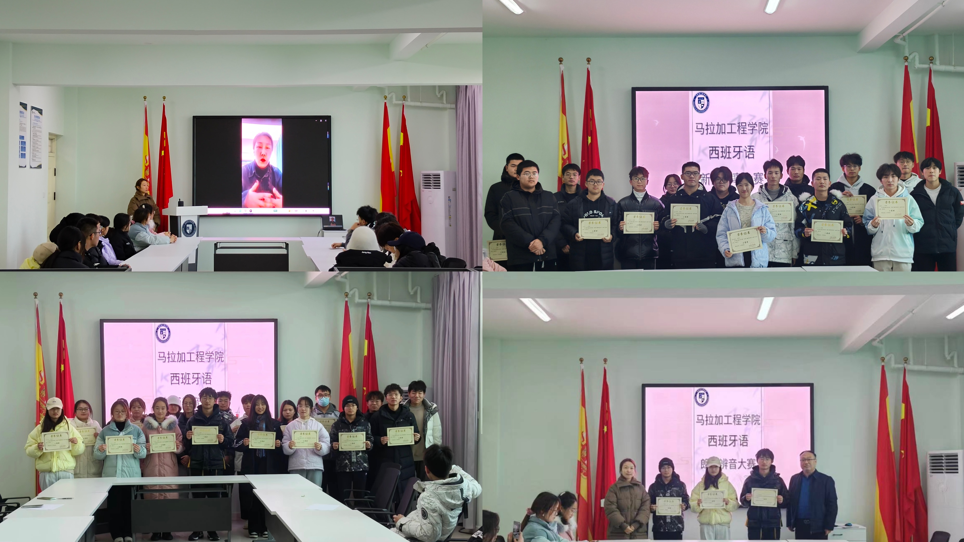 为培养员工良好的语言风貌和思辩意识,以兴趣培养缓解学业压力,通过实际应用提升员工的西班牙语学习效果,太阳成tyc122cc集团各专业在西语老师的指导下持续开展了“赏”、“阅”、“辩”、“书”四类主线活动。朗诵辩音和新闻阅事两场赛事正是员工们阶段性学习成果的体现。