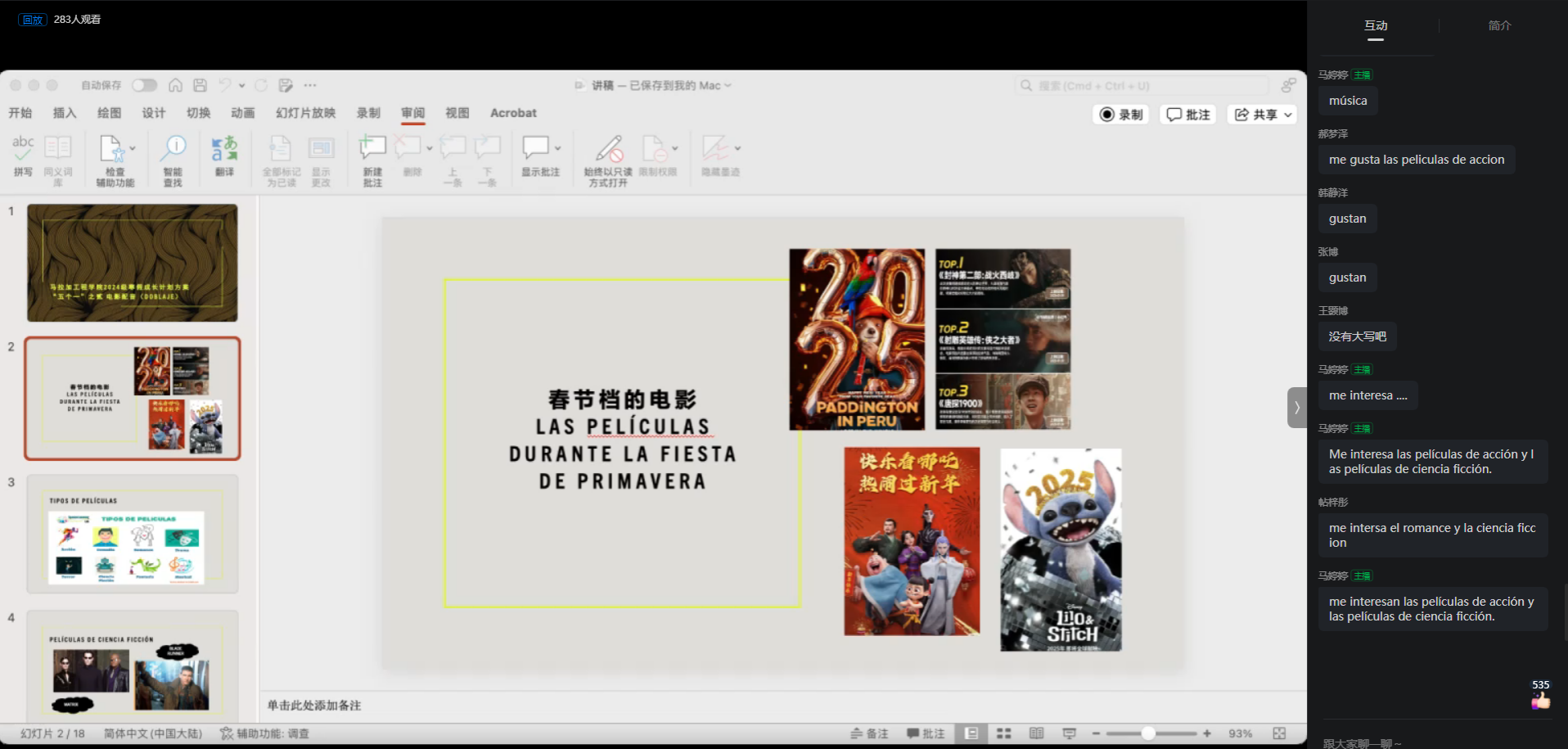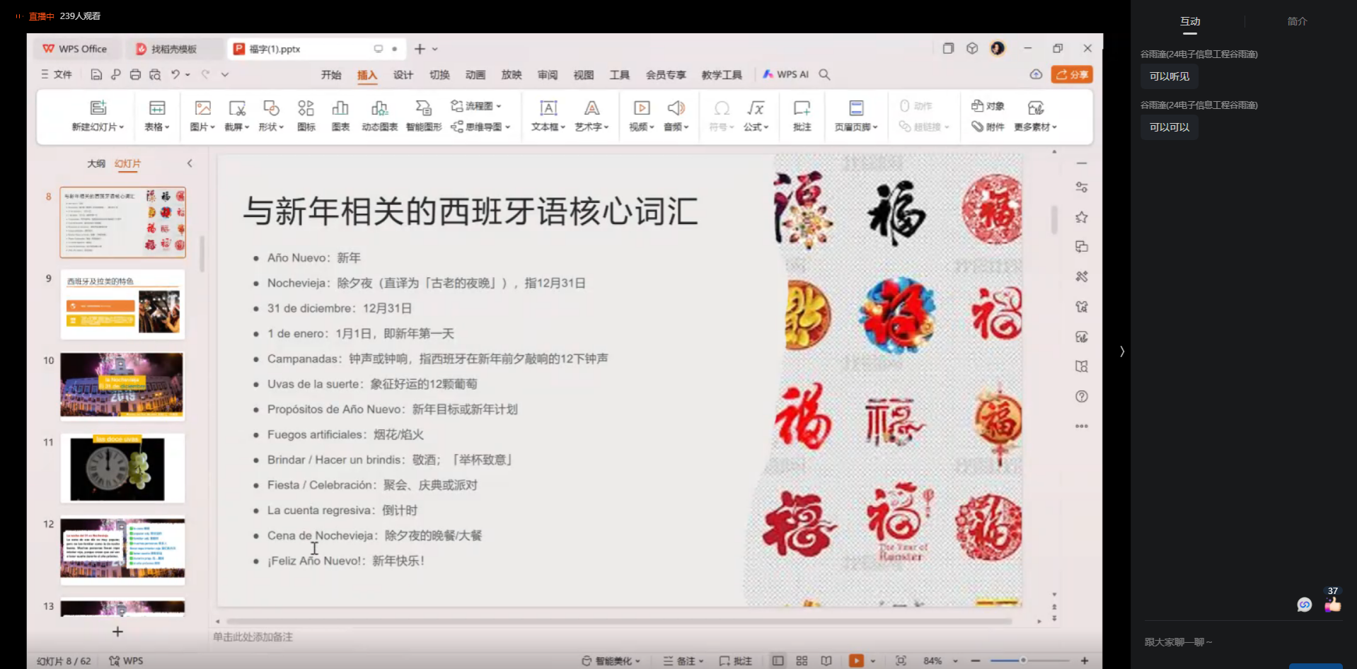 针对2023级员工探索了“221”寒假成长计划,即引进课程消化吸收、专业应用创新创造“2”个专业项目,西语朗读打卡、美食制作Vlog“2”个西班牙语项目,学术探索+语言应用“1”个语言专业融合项目。