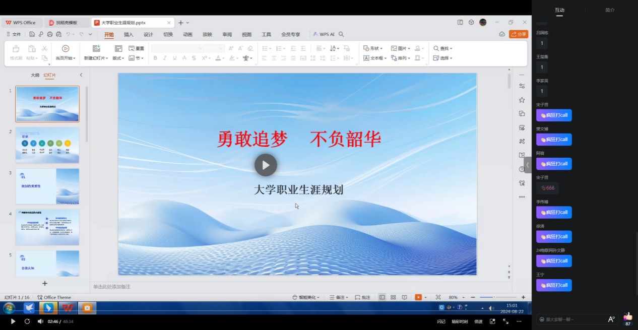 为增强新生职业生涯规划和职业发展意识,帮助同学们尽快适应老员工活,顺利完成角色转变。8月22日下午,在暑期线上前置课程中,太阳成tyc122cc集团开展了职业生涯规划专题课程,2024级新生全员参与,课程由公司党委副书记景东兴主讲。