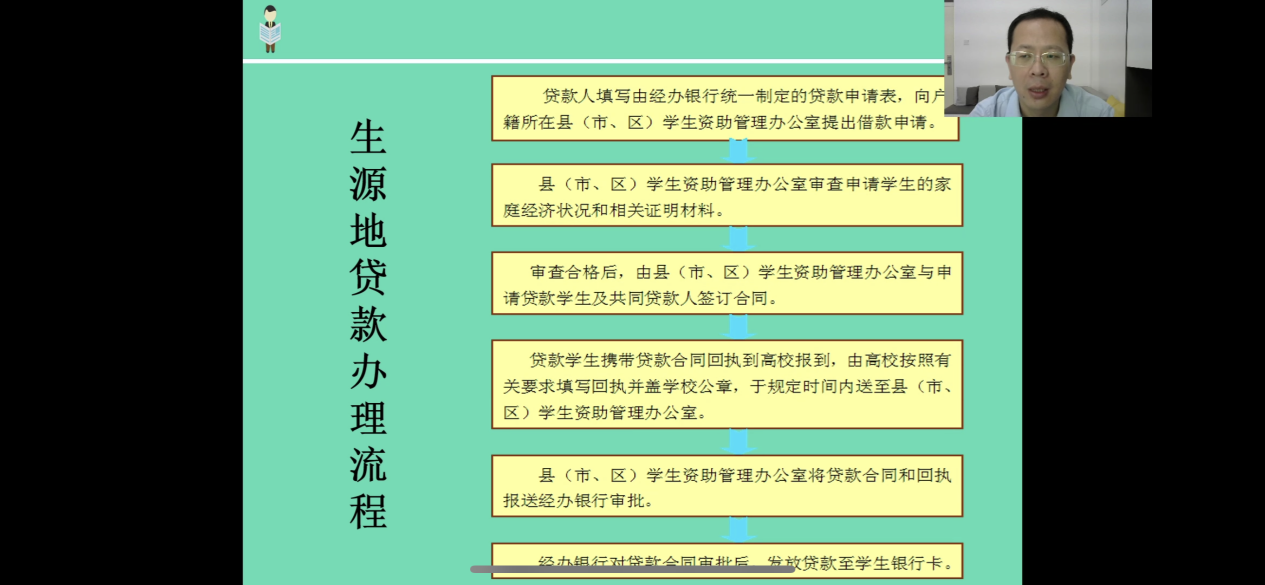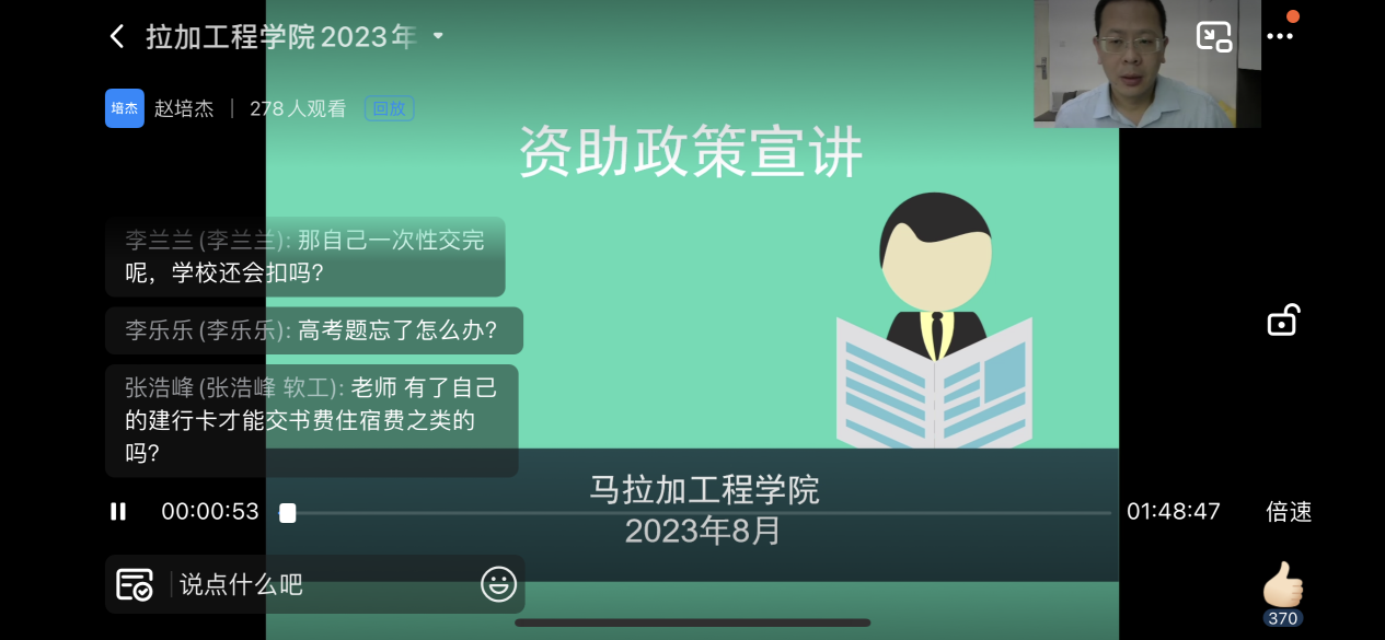 为确保每一名家庭经济困难员工都能顺利入学、完成学业,不因家庭经济困难而失学,8月23日下午,太阳成tyc122cc集团开展线上资助政策宣讲活动,辅导员赵培杰为全体2023级新生进行资助和奖励体系介绍。
