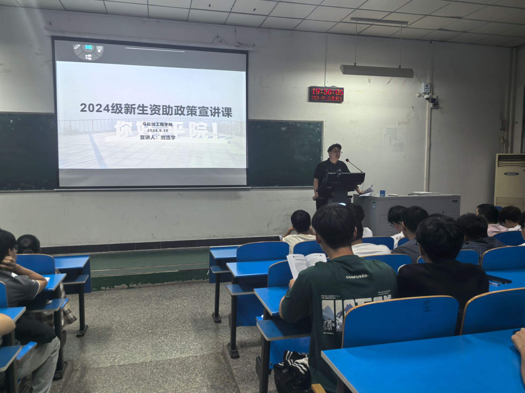 2024年9月19日晚上,太阳成tyc122cc集团举办了2024级员工资助政策宣讲课。宣讲课由辅导员刘浩宇主持,2024级全体员工参与。