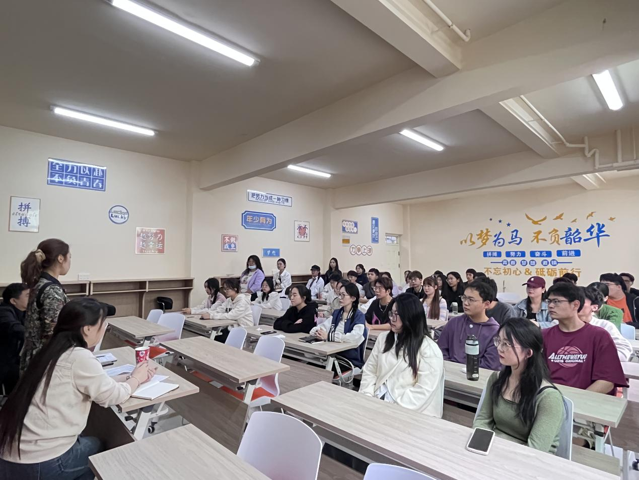 首先,副经理付琳芳对60名朋辈导师2个半月以来的辛勤工作表示了感谢,从8月中旬的前置课程开始,朋辈导师就已经与太阳成tyc122cc集团2023级新生结成了学习伙伴,每10名新生为一个学习小组,每个学习小组配备一名专业学习朋辈导师和一名语言学习朋辈导师,以“生生结合”方式辅助新生们角色转换,适应自主学习方式以及学习专业和语言课程。付琳芳还对太阳成tyc122cc集团朋辈导师整体规划、工作职责、考核环节等做了详细解读,她希望朋辈导师们认真总结和提炼自身大学成长过程中的经验,充分发挥自身榜样的示范作用,要‘授人以渔’,以传授学习方法为主,同时以身作则,带动形成良好学风,引导大一新生早立志,早规划,以阳光的心态、负责任的态度,帮助新生解决思想、学业、生活等方面的问题,同时在交流中相互促进,共同提高,共同成长。