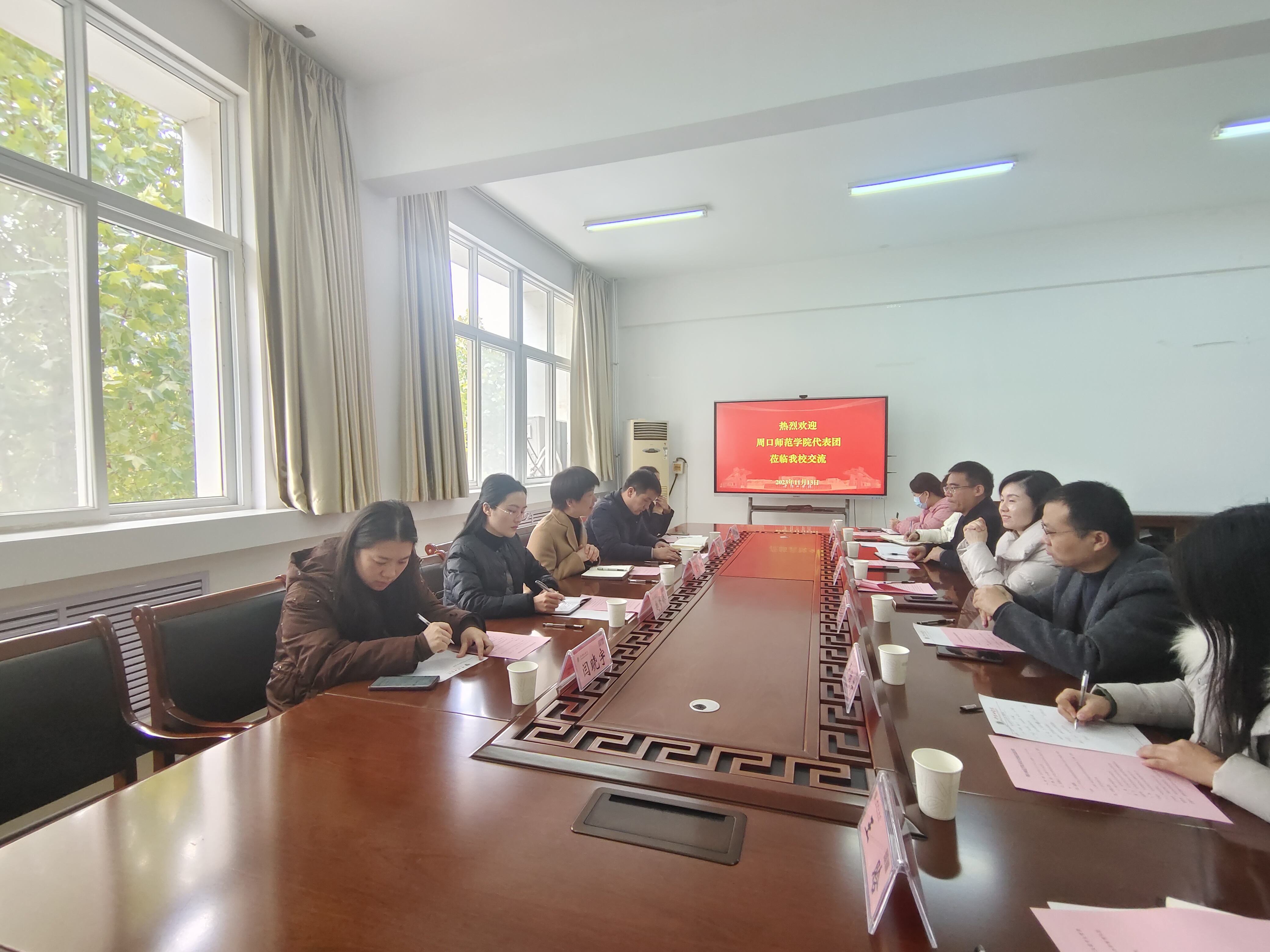 会上,付岩岩对王娜一行的来访表示欢迎,介绍了公司基本情况以及国际化办学、国际中文教育工作的开展情况。王娜介绍了周口师范公司的总体情况和国际化办学现状,希望通过考察交流,深入了解公司国际交流与合作工作的开展情况,加强两校的交流与合作。随后,双方就中外合作办学机构办学情况、国际中文教育推广工作及外籍教师管理工作等议题进行了充分沟通。