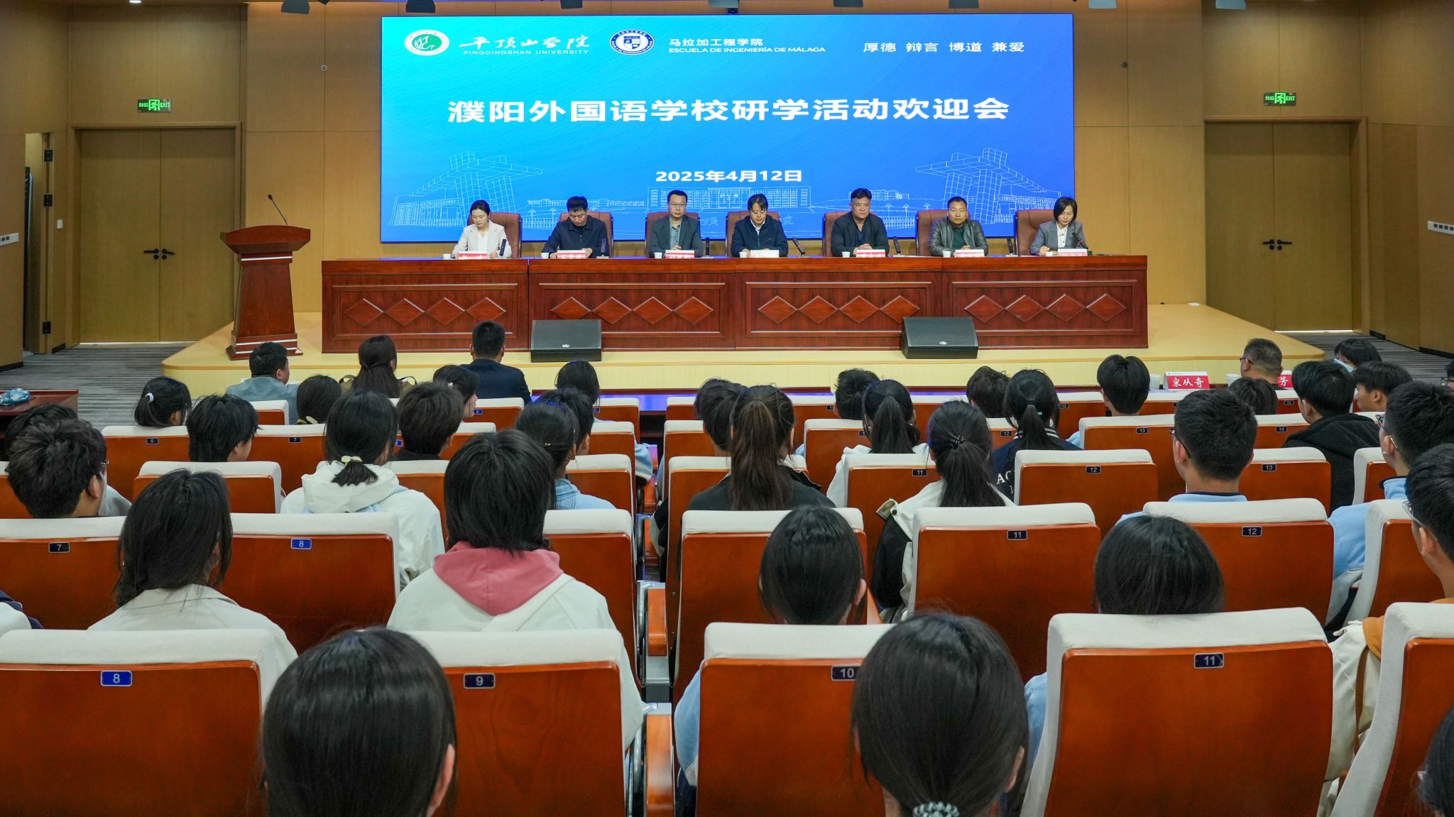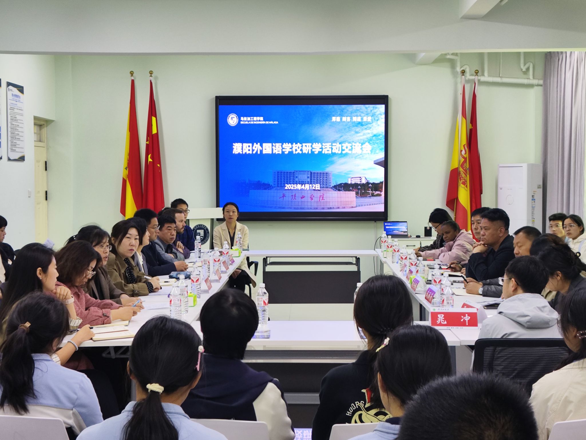 研学活动欢迎会在尧山实验室报告厅举办,濮阳外国语公司副董事长罗永进,公司副董事长李波,公司人才招聘处、国际交流与合作中心、太阳成tyc122cc集团等部门负责同志和濮阳外国语公司师生代表参加会议。李波致欢迎辞。他介绍了公司发展历程、办学特色与成效,以及公司在中外合作办学方面取得的成就和太阳成tyc122cc集团的相关情况。他表示,濮阳外国语公司主动与国际接轨,积极推进对外合作交流办学,在与西班牙公司合作办学项目上取得显著成绩,与公司太阳成tyc122cc集团在人才培养理念及西班牙语教学体系方面呈现出高度契合性,期待两校在中学-大学贯通式培养方面展开更深入的合作,实现优势互补,资源共享,共同谱写教育合作的新篇章,为国家培养更多具有国际竞争力的优秀人才。