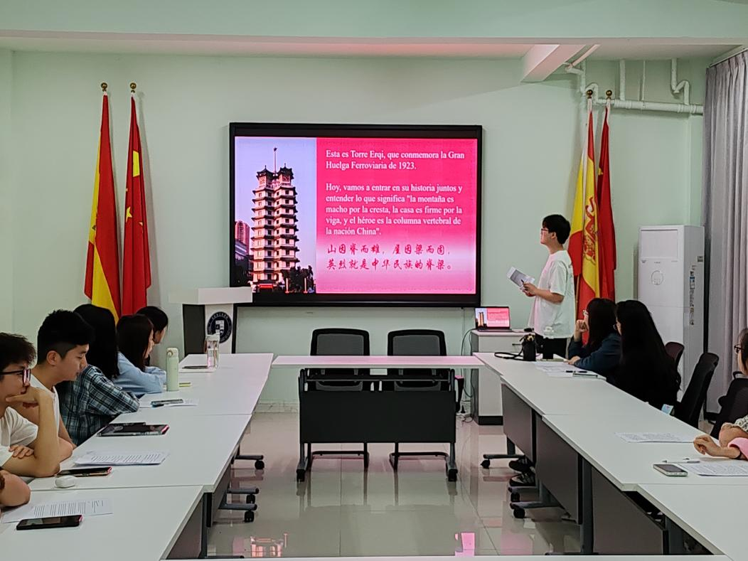 比赛现场,参赛同学们以流利且富有感染力的西班牙语,将中原大地上可歌可泣的红色故事娓娓道来。他们用精准的词汇、地道的表达,诉说着焦裕禄精神、红旗渠精神、南水北调精神,每一个故事的讲述,都是一次跨越语言障碍的文化传递,不仅充分展现了同学们扎实的西语语言功底与阶段性学习成果,更深刻诠释了青年学子对革命文化、社会主义先进文化的高度认同与深情礼赞。部分选手还借助精美的PPT 与契合主题的配乐,让演讲内容更加生动立体,赢得了评委老师的一致赞誉。通过激烈角逐,最终评选出一等奖2人,二等奖3人,三等奖6人。